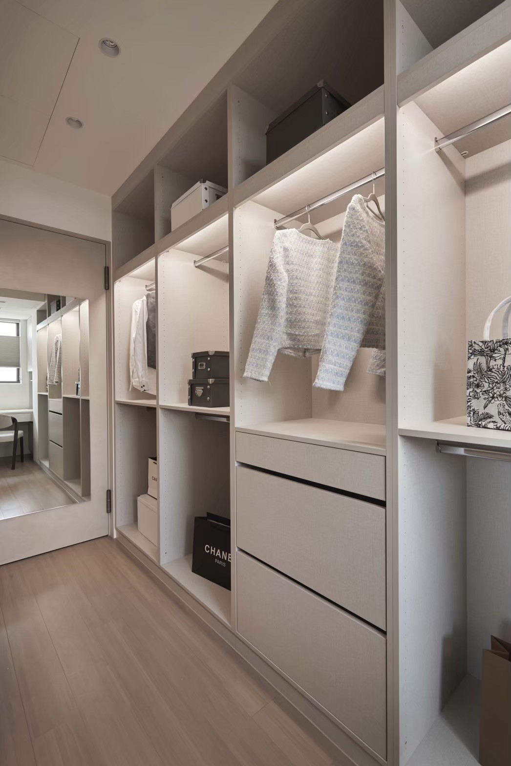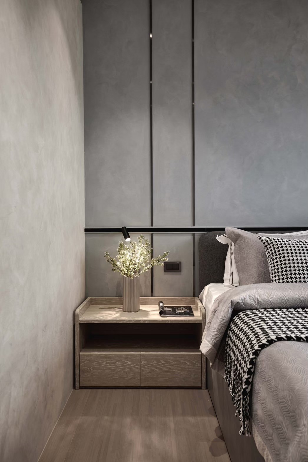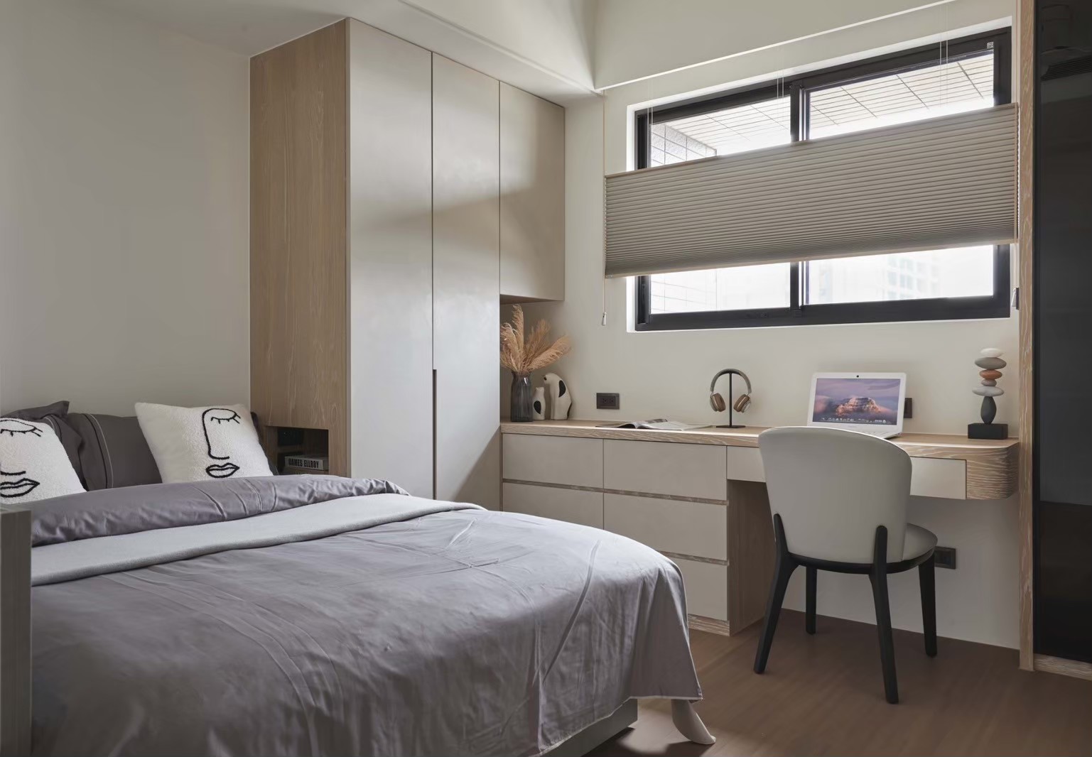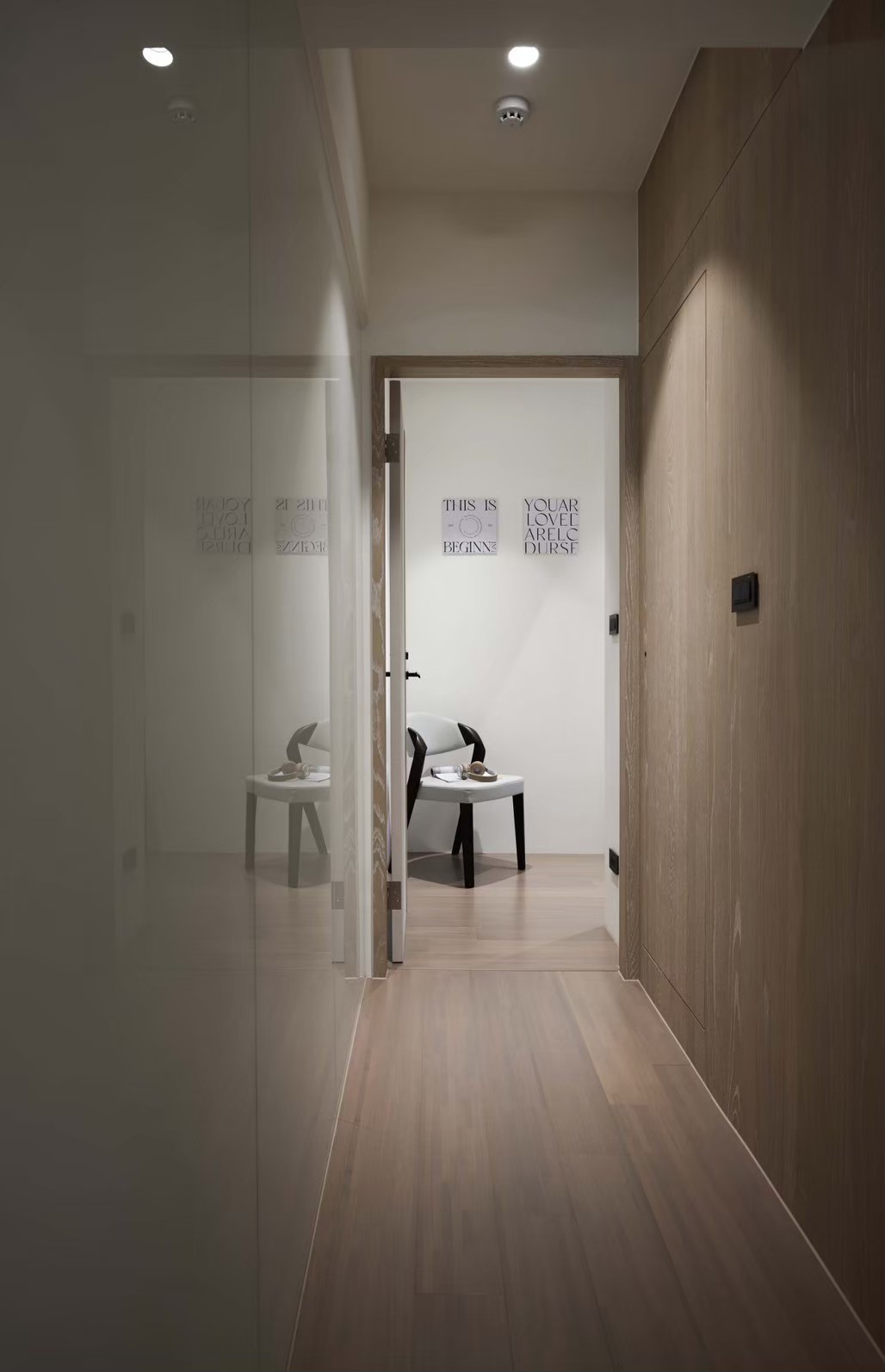 以北歐侘寂Japandi強調自然、紓壓的概念作為設計主張,以人文回憶來促成親子交流,巧妙地將視覺延伸、交錯、融合,回應居住者生活的動線及維繫完美的靈活度。無論材質或家具的選配上,除了協調上的美觀,也重視自然、環保、實用性的發展。 新成屋、60 坪室內空間,規劃為4房3衛2廳格局。材質、顏色、線條的安排上,以彰顯內斂雅緻的莫蘭迪色彩為主,跳脫繁複的元素,在材質的顏色上斟酌,給予空間一種放鬆、寧靜的包容意象,透過實木自然紋理的張力以及間接燈光的層次表情凝聚一種療癒的能量! 玄關以西班牙地磚的拼貼方式,打造落塵區;客、餐廳、廚房採開放方式規劃,動線機能開闊且充裕。全室海島型木地板鋪設,讓生活更添質樸溫馨…主臥設計以舒適溫馨規劃睡眠區,並設計收納與使用機能完備的更衣區,滿足女主人生活需求。私密空間整合畸零區域,動線流暢外,更規劃充裕收納機能。 整體設計,延續出主人生活的動態,並以最大使用坪效作為要件,褪去瑣碎的線條或顏色,跳脫材料、造型或機能等框架,回應家人之間的情感互動。以介面的關係延伸來轉換區域的變化,藉此減低不必要的空間線條,擘劃出機能、美感、尺度的平衡,揭露居住者個性,回應舒適、互動、開闊居家的悠閒時光。