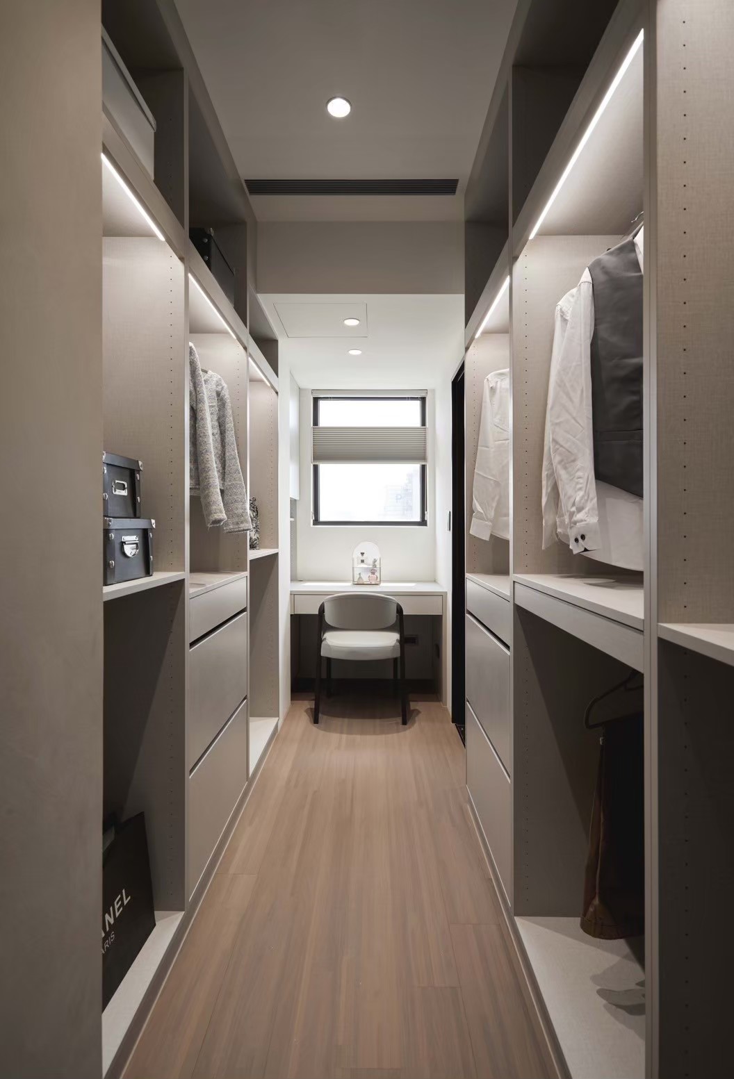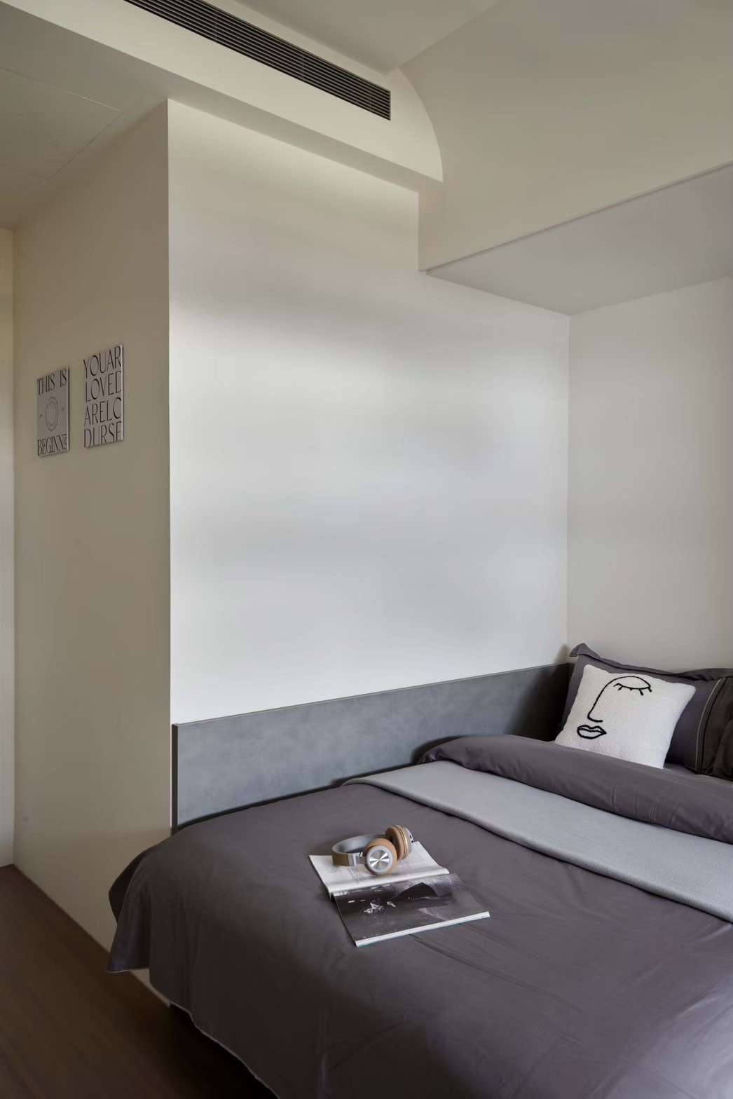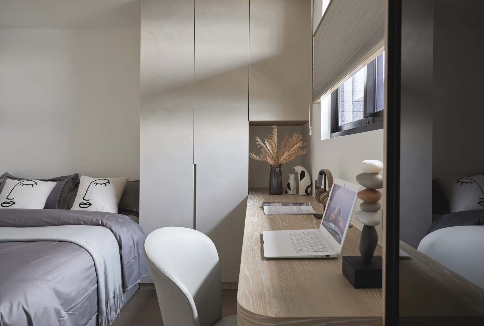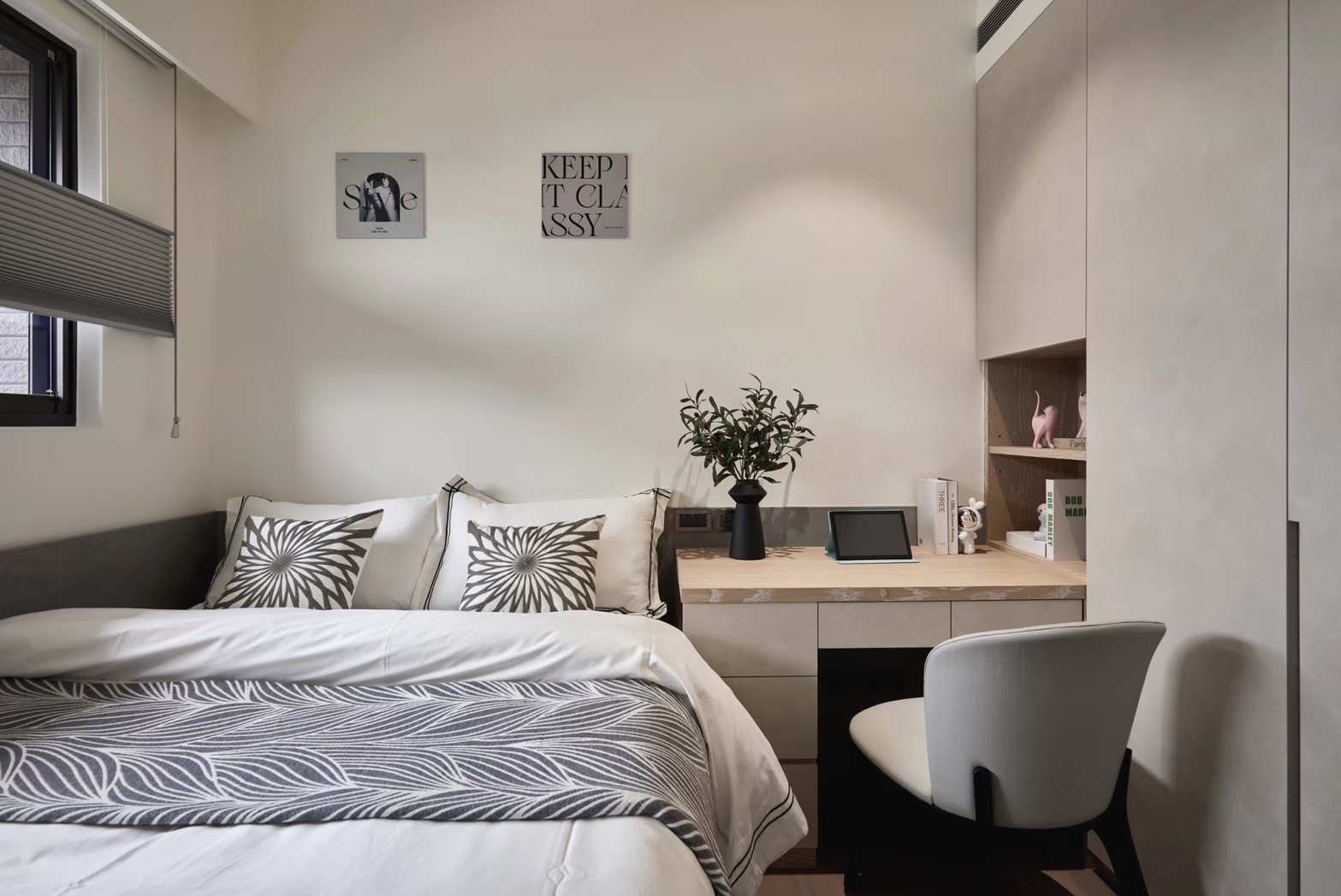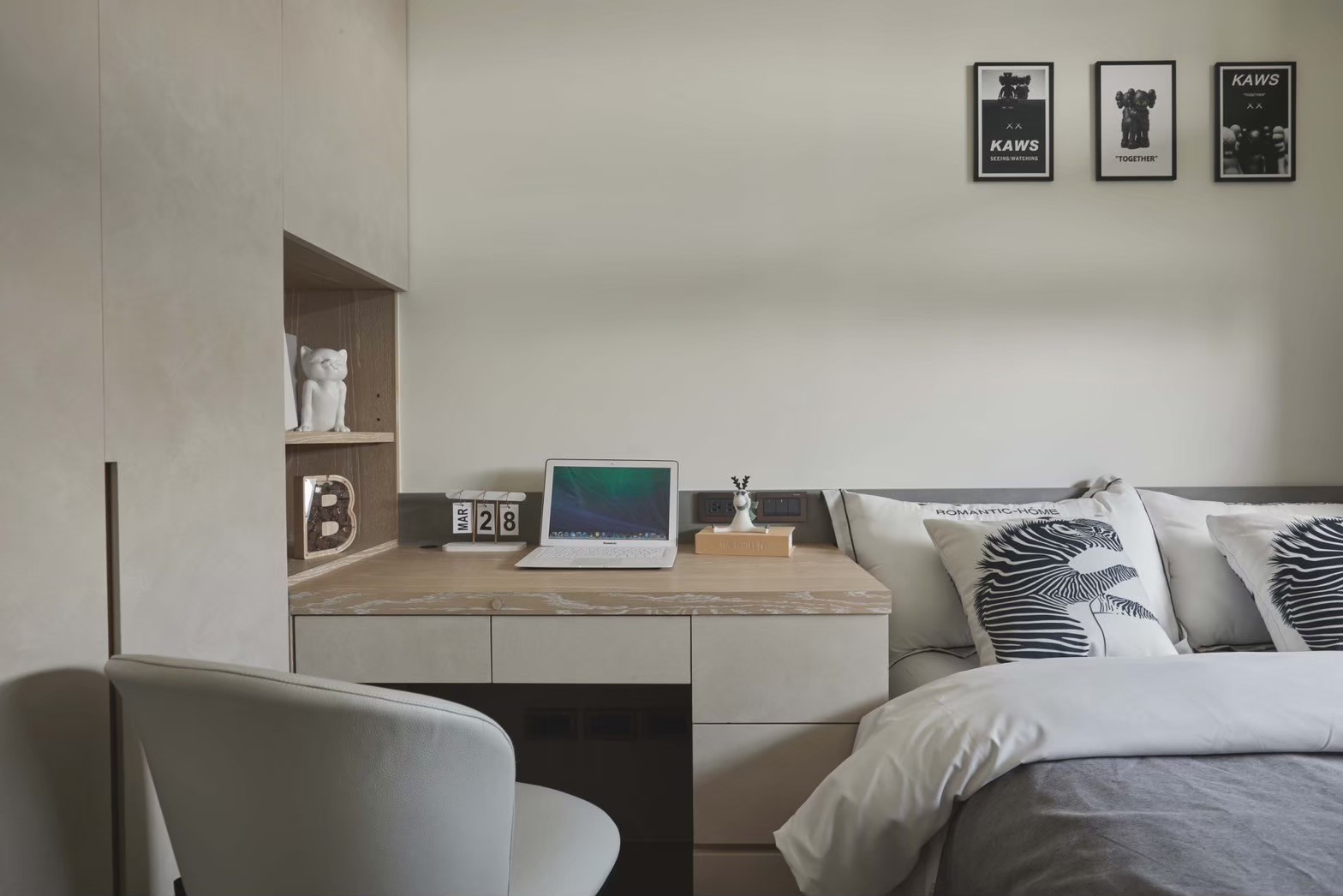 以北歐侘寂Japandi強調自然、紓壓的概念作為設計主張,以人文回憶來促成親子交流,巧妙地將視覺延伸、交錯、融合,回應居住者生活的動線及維繫完美的靈活度。無論材質或家具的選配上,除了協調上的美觀,也重視自然、環保、實用性的發展。 新成屋、60 坪室內空間,規劃為4房3衛2廳格局。材質、顏色、線條的安排上,以彰顯內斂雅緻的莫蘭迪色彩為主,跳脫繁複的元素,在材質的顏色上斟酌,給予空間一種放鬆、寧靜的包容意象,透過實木自然紋理的張力以及間接燈光的層次表情凝聚一種療癒的能量! 玄關以西班牙地磚的拼貼方式,打造落塵區;客、餐廳、廚房採開放方式規劃,動線機能開闊且充裕。全室海島型木地板鋪設,讓生活更添質樸溫馨…主臥設計以舒適溫馨規劃睡眠區,並設計收納與使用機能完備的更衣區,滿足女主人生活需求。私密空間整合畸零區域,動線流暢外,更規劃充裕收納機能。 整體設計,延續出主人生活的動態,並以最大使用坪效作為要件,褪去瑣碎的線條或顏色,跳脫材料、造型或機能等框架,回應家人之間的情感互動。以介面的關係延伸來轉換區域的變化,藉此減低不必要的空間線條,擘劃出機能、美感、尺度的平衡,揭露居住者個性,回應舒適、互動、開闊居家的悠閒時光。