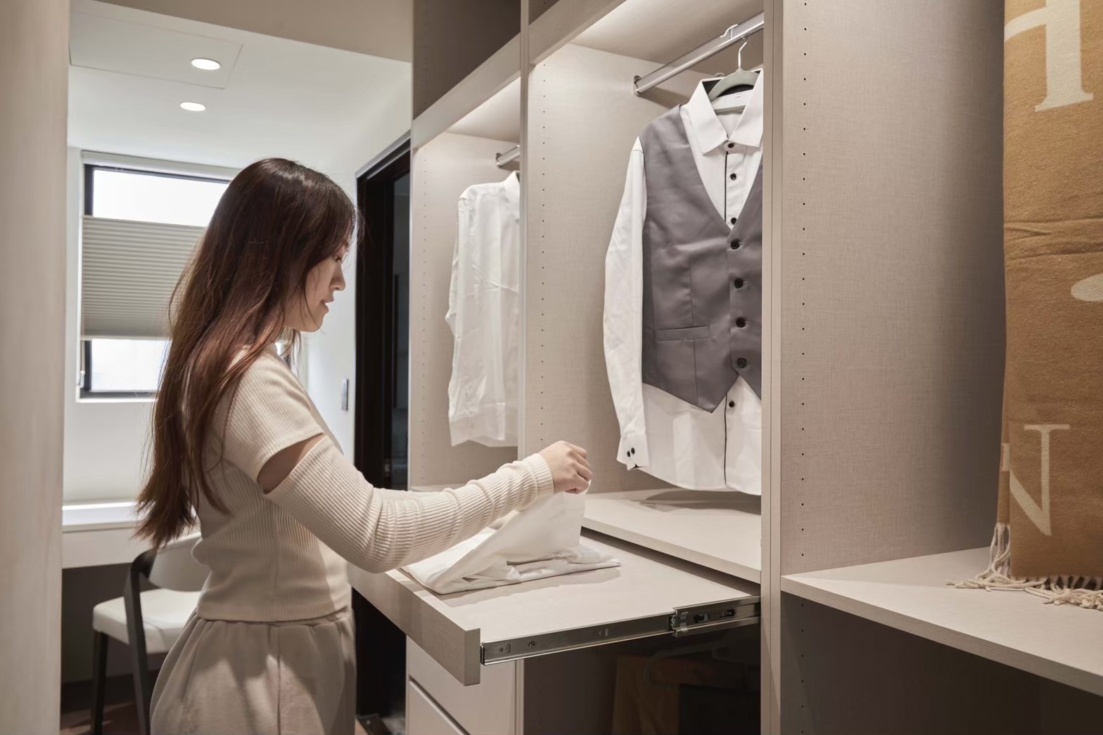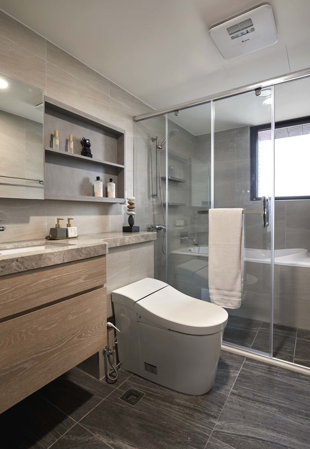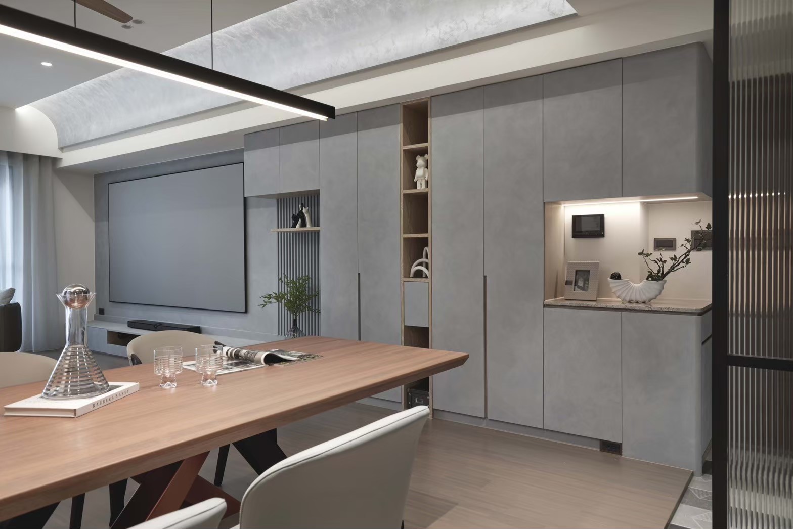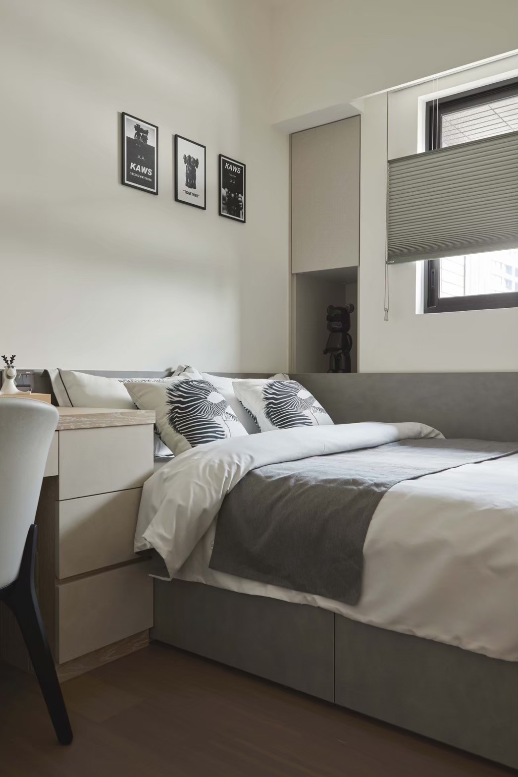 以北歐侘寂Japandi強調自然、紓壓的概念作為設計主張,以人文回憶來促成親子交流,巧妙地將視覺延伸、交錯、融合,回應居住者生活的動線及維繫完美的靈活度。無論材質或家具的選配上,除了協調上的美觀,也重視自然、環保、實用性的發展。 新成屋、60 坪室內空間,規劃為4房3衛2廳格局。材質、顏色、線條的安排上,以彰顯內斂雅緻的莫蘭迪色彩為主,跳脫繁複的元素,在材質的顏色上斟酌,給予空間一種放鬆、寧靜的包容意象,透過實木自然紋理的張力以及間接燈光的層次表情凝聚一種療癒的能量! 玄關以西班牙地磚的拼貼方式,打造落塵區;客、餐廳、廚房採開放方式規劃,動線機能開闊且充裕。全室海島型木地板鋪設,讓生活更添質樸溫馨…主臥設計以舒適溫馨規劃睡眠區,並設計收納與使用機能完備的更衣區,滿足女主人生活需求。私密空間整合畸零區域,動線流暢外,更規劃充裕收納機能。 整體設計,延續出主人生活的動態,並以最大使用坪效作為要件,褪去瑣碎的線條或顏色,跳脫材料、造型或機能等框架,回應家人之間的情感互動。以介面的關係延伸來轉換區域的變化,藉此減低不必要的空間線條,擘劃出機能、美感、尺度的平衡,揭露居住者個性,回應舒適、互動、開闊居家的悠閒時光。