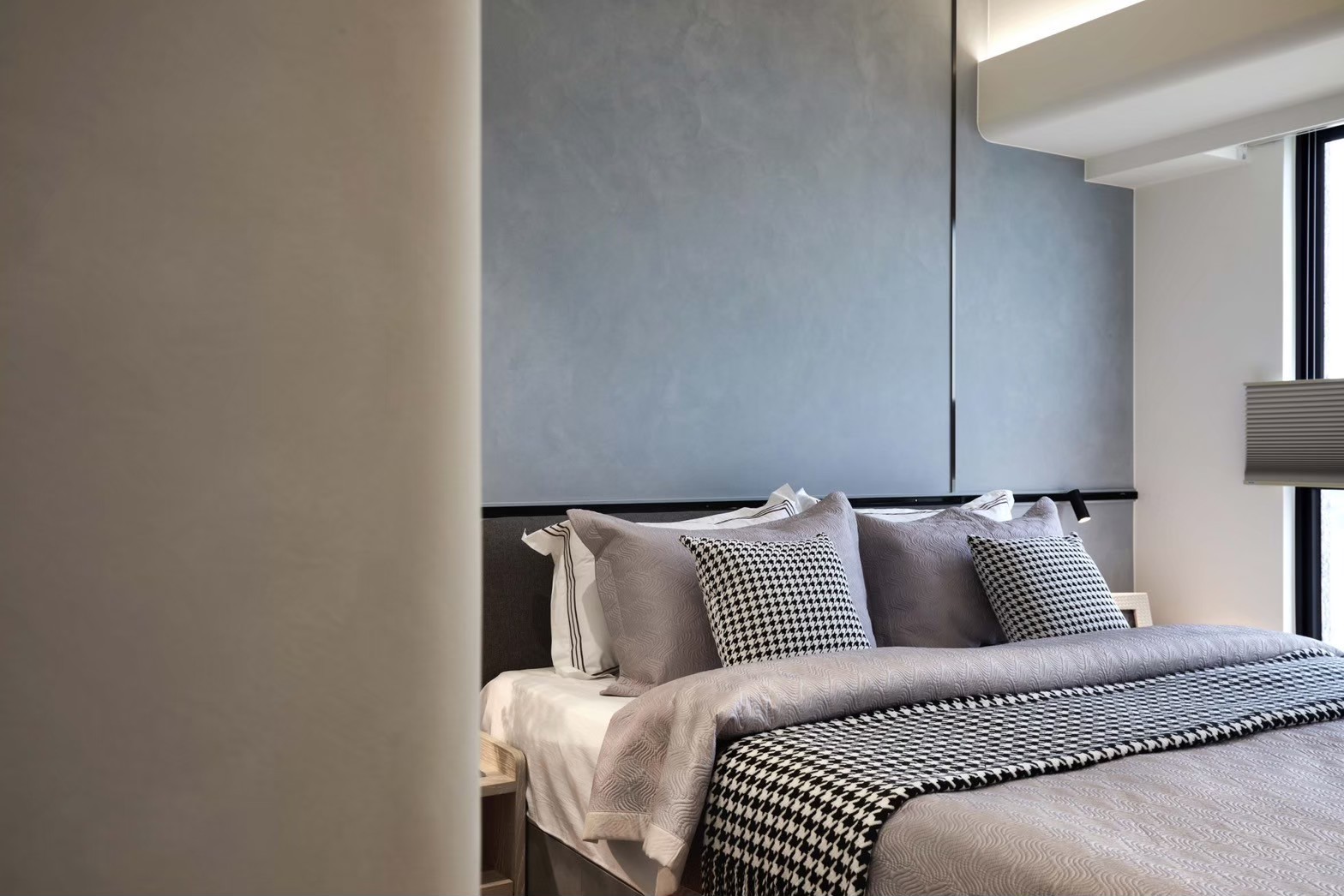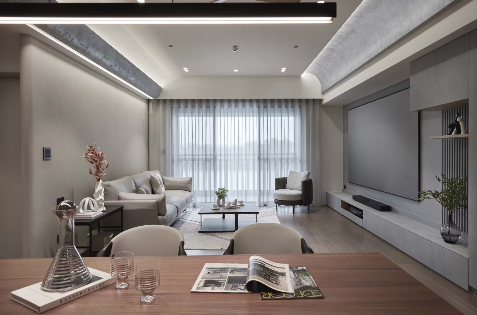 80%的北歐侘寂Japandi風格、20%的溫暖溫馨的空間表情,以大尺度的安排為前提,達到悠閒、紓壓的效果。 室內60坪、新成屋形式,設計規劃為四房三衛二廳, 挹注自然、質樸、閒適的生活氛圍與調性,挹注大量的留白於其間,讓場域與心靈得以適當的舒展、適當的對話。收納機能與公私領域動線開口以隱藏方式規劃,透過客、餐廳的開放式設計,有效拉闊空間尺度,為屋主希冀的質感生活,帶來舒適與愜意…