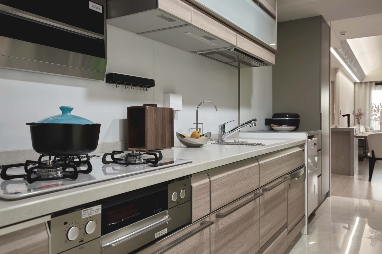 天然木皮、特殊漆、海島型實木地板、日本原裝琺瑯廚具 Takara standard、風琴簾、進口壁布 鑒於居住健康品質的維護及環保概念的實踐,全室採用低甲醛具F1等級的建材及環保健康塗料,不僅是對居住健康品質的重視,更是對環保理念的實踐。環保理念的重視。