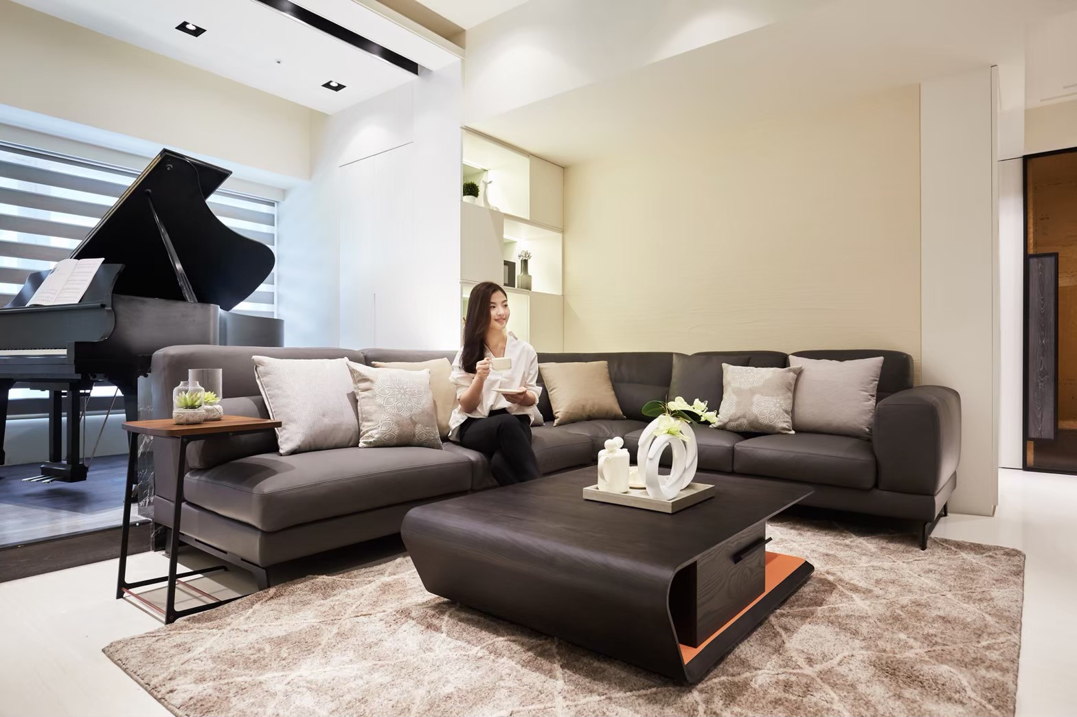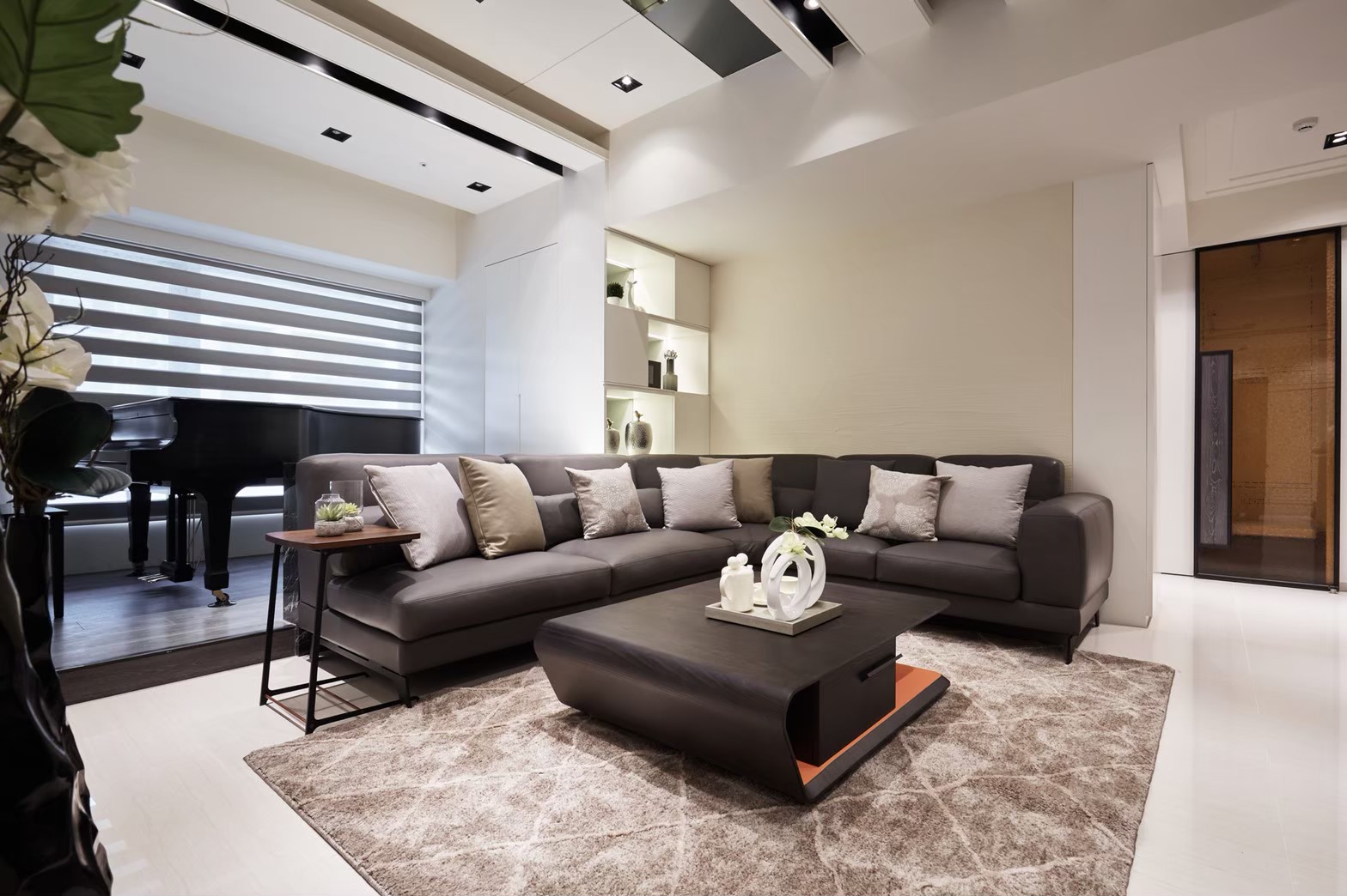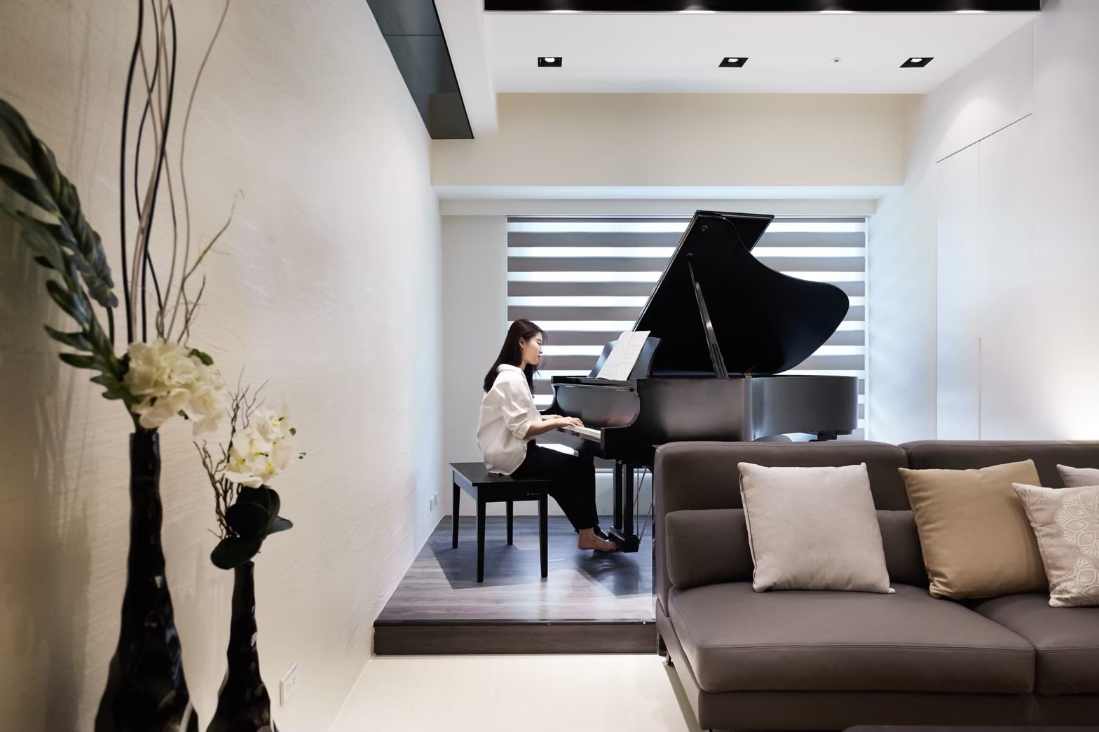 本案為新成屋,具雙主臥格局,設計風格期望朝現代時尚走向。較為特殊的是,屋主有一台尺寸不小的三角鋼琴,需於空間裡找到合適的位置安放,能發揮琴音帶給新家的和諧風韻。