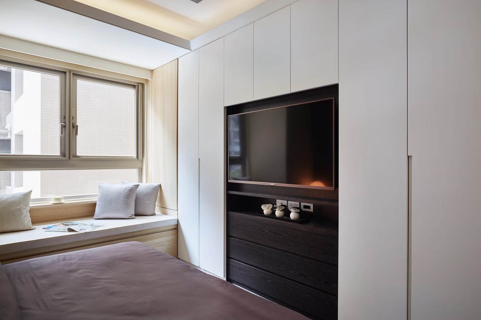 從消除空間裡的梁柱開始,透過場域規劃及設計手法,將機能悄悄帶入,讓惱人的梁柱消失無蹤,只給予起居舒適度及凸顯屋主生活特色。